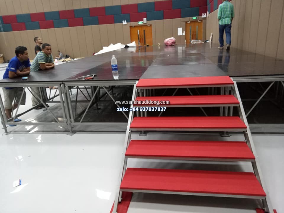 - Sàn sân khấu di động với kích thước module tiêu chuẩn 1.22m x 1.22m, chiếu cao có thể tự điều chỉnh kích thước từ : 0.5m - 2m.